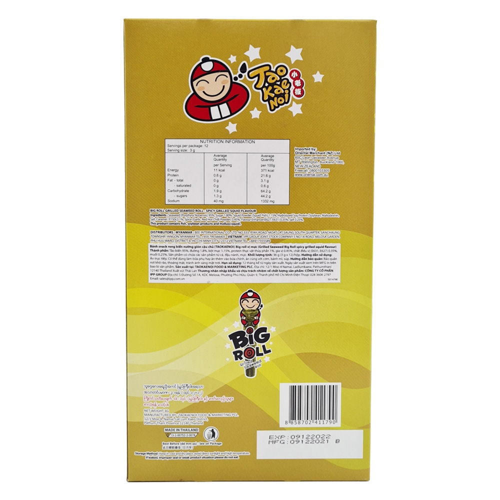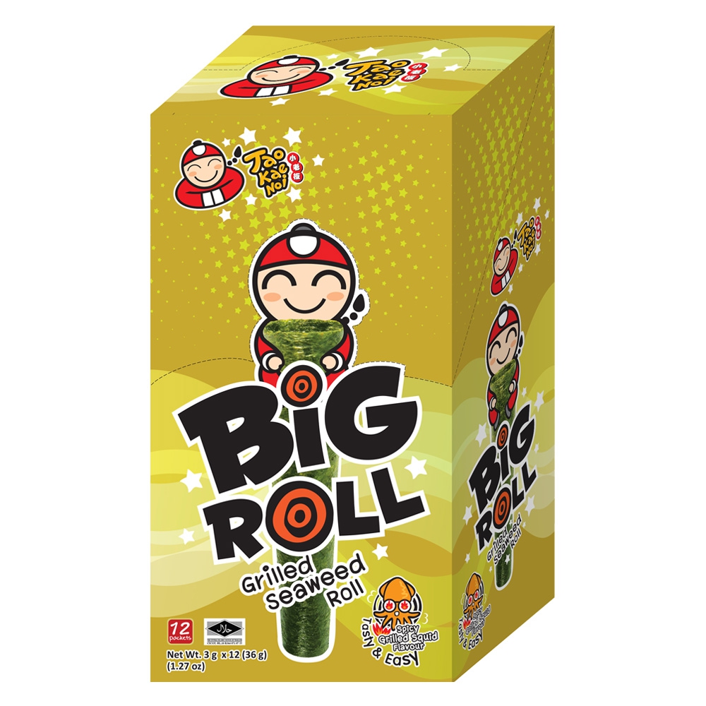 | Tên sản phẩm | Bánh Snack rong biển nướng giòn Taokaenoi Big Roll vị mực |