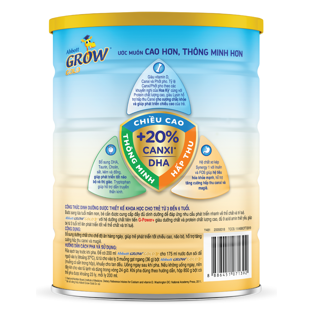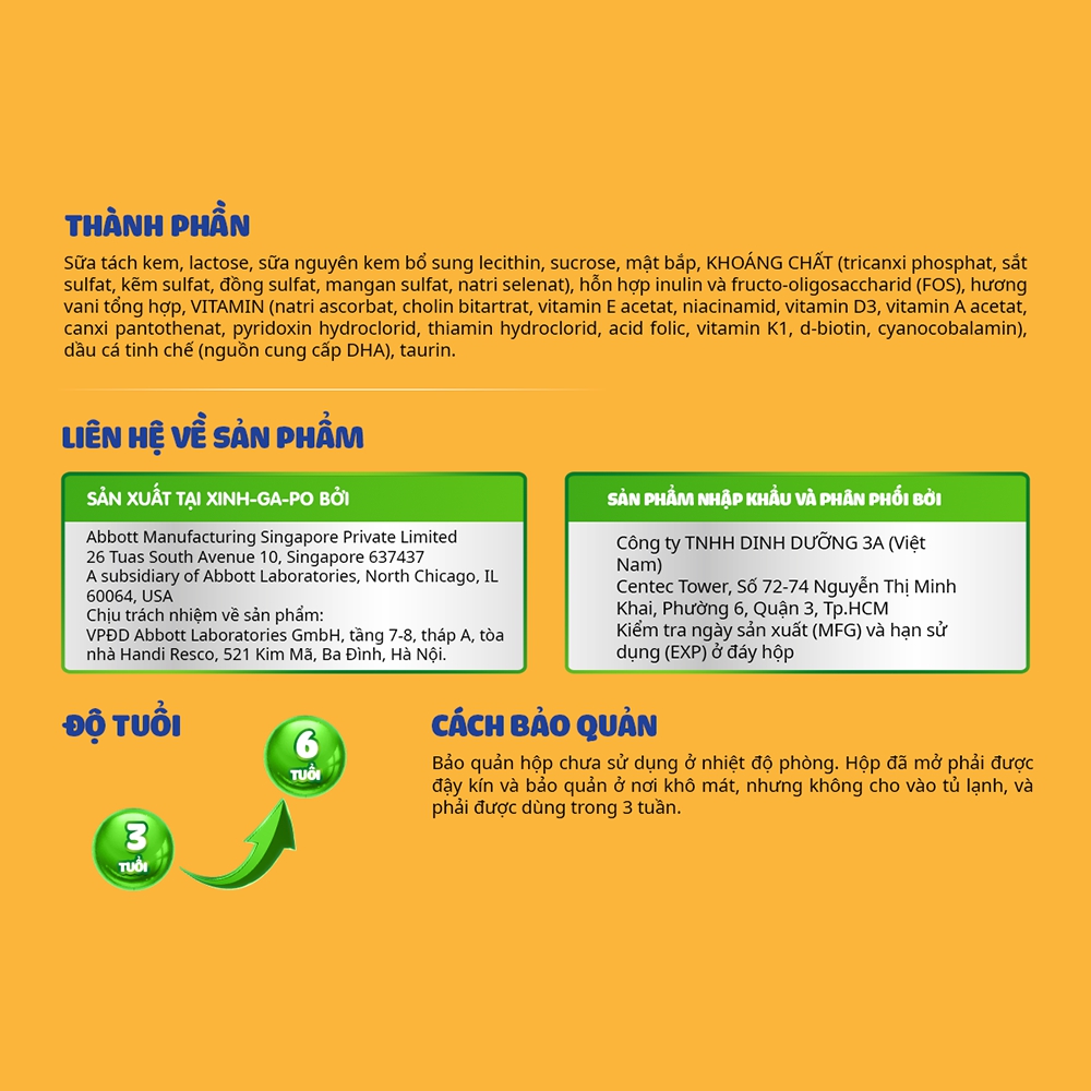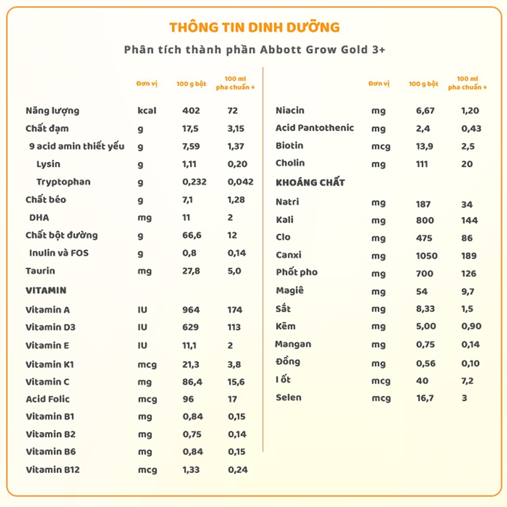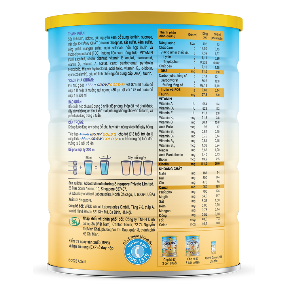 | Tên sản phẩm | Thực phẩm bổ sung cho trẻ từ 3 đến 6 tuổi: Abbott Grow Gold 3+ |