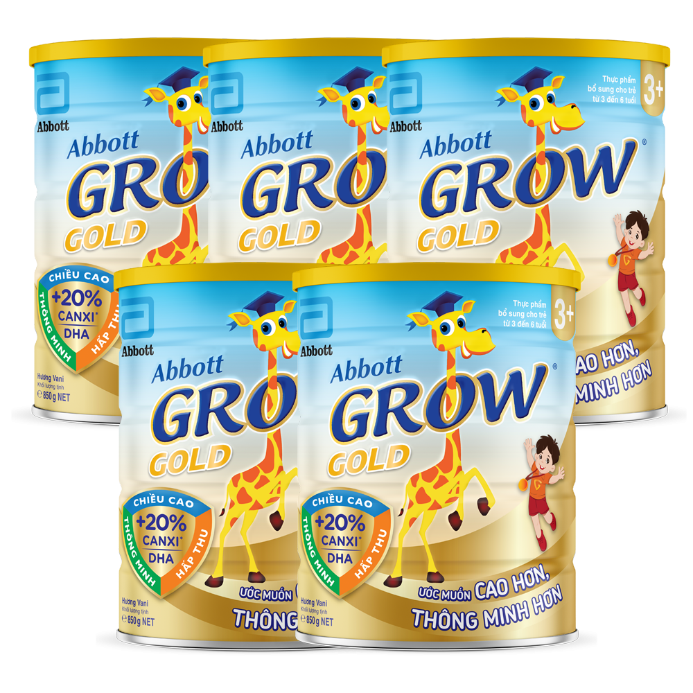 Combo 5 Sữa Abbott Grow 3+ 850g (3-6 tuổi) (tên cũ: Abbott Grow Gold 3+, giao bao bì ngẫu nhiên)