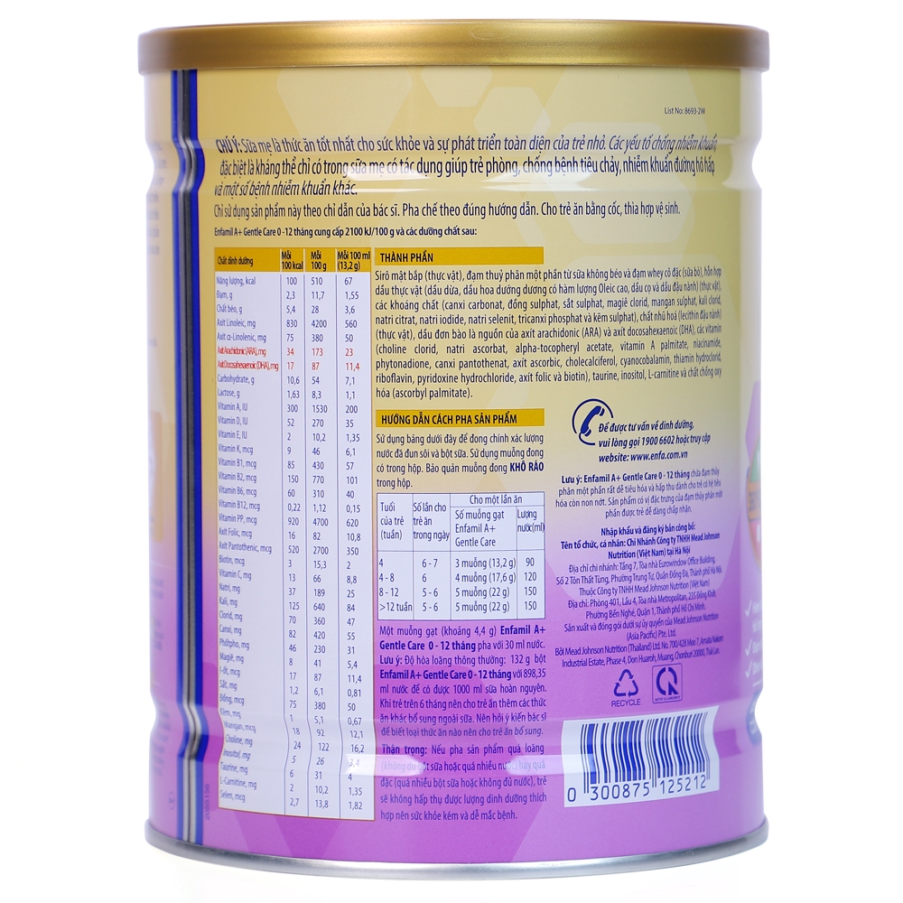 Combo 2 lon Sữa Enfamil A+ Gentle Care Infant Formula 800g (0-12 tháng)