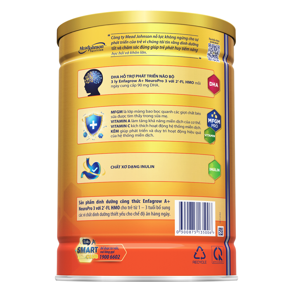 | Tên sản phẩm | Sản phẩm dinh dưỡng công thức Enfagrow A+ NeuroPro 3 với 2'-FL HMO 1700G |