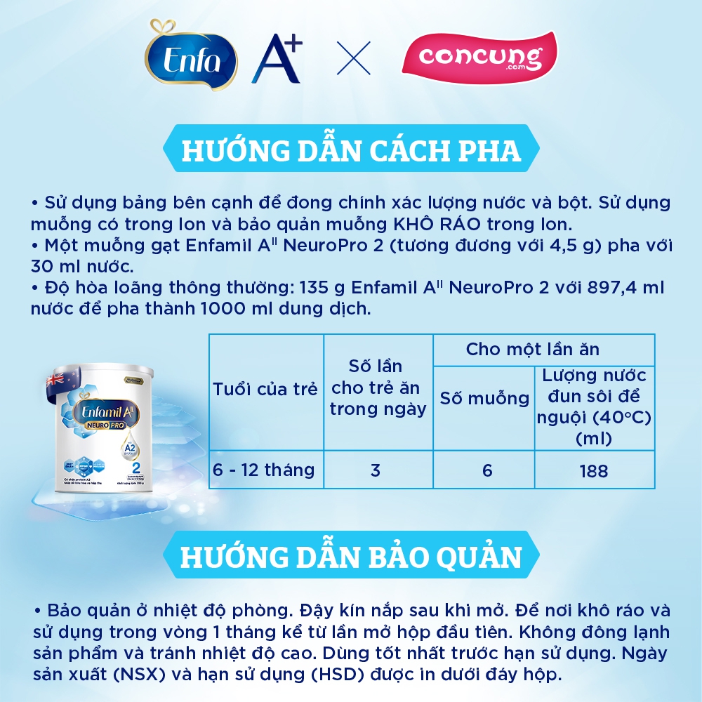 Sữa Enfamil A2 NeuroPro số 2 350g (Follow Up Formula, 6 - 12 tháng tuổi)