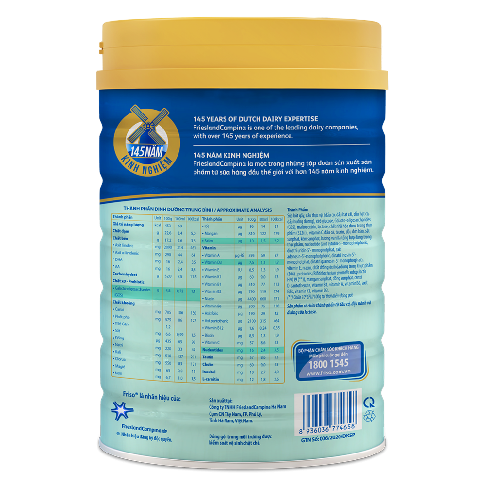 | Nhà sản xuất | Công ty TNHH FrieslandCampina Hà Nam Cụm CN Tây Nam, TP. Phủ Lý, Tỉnh Hà Nam, Việt Nam. |