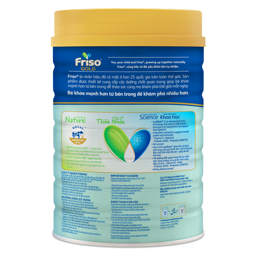 | Cảnh báo | . Sử dụng sản phẩm Frisolac®Gold 4 sau khi pha trong vòng 1 giờ. . Nếu điều kiện bảo quản, quy trình chuẩn bị và pha chế Frisolac®Gold 4 không đúng, có thể ảnh hưởng nghiêm trọng đến sức khỏe của bé. |