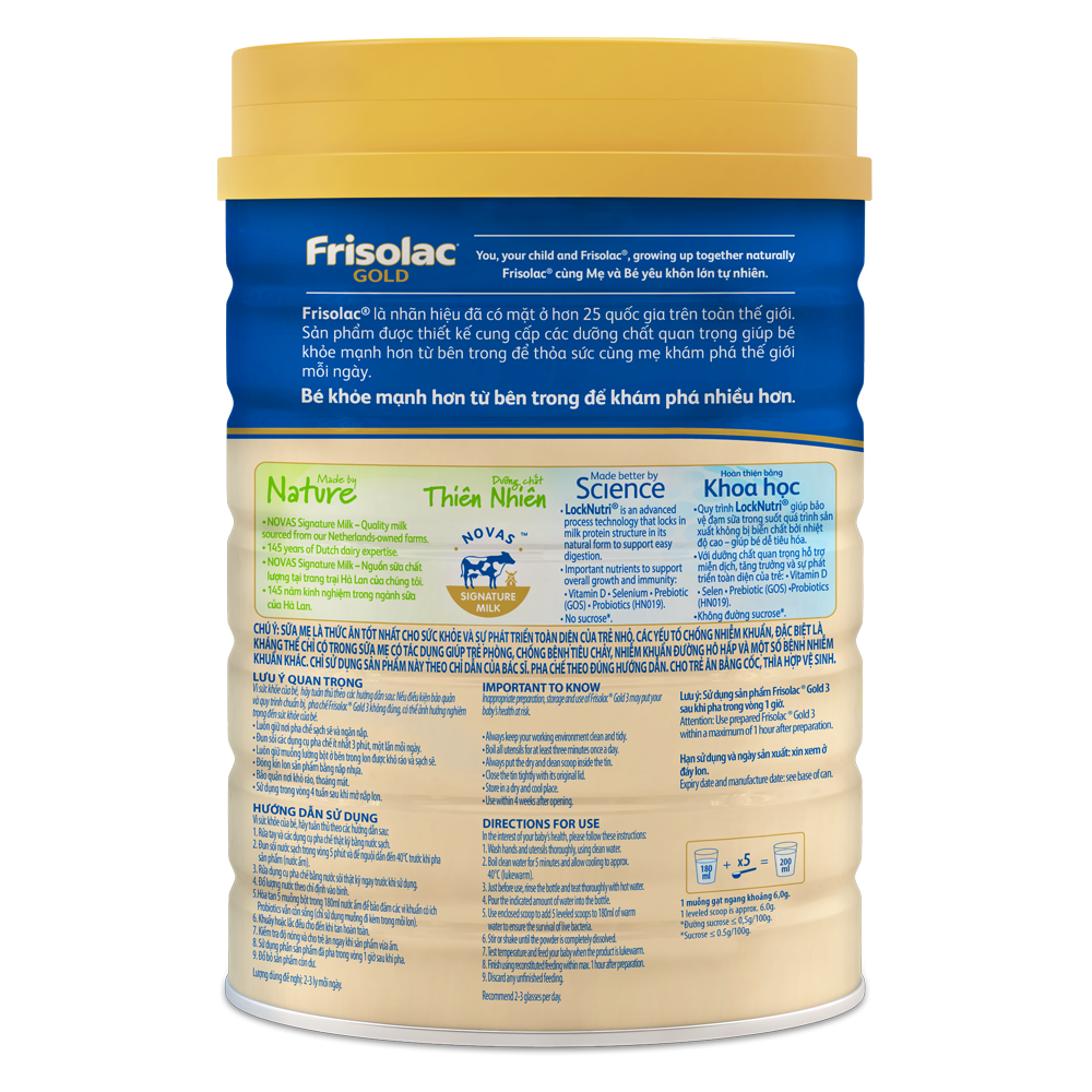 | Cảnh báo | . Sử dụng sản phẩm Frisolac®Gold 3 sau khi pha trong vòng 1 giờ. . Nếu điều kiện bảo quản, quy trình chuẩn bị và pha chế Frisolac®Gold 3 không đúng, có thể ảnh hưởng nghiêm trọng đến sức khỏe của bé. |