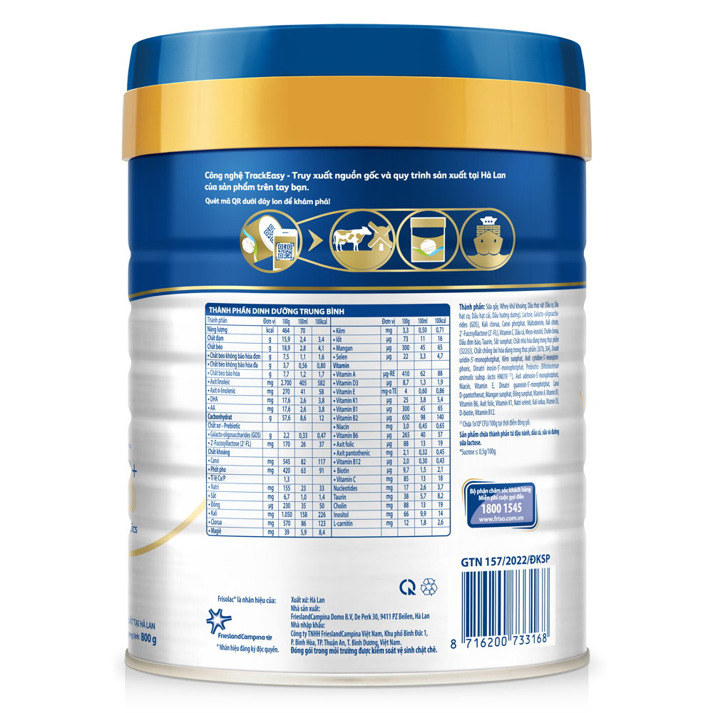| Công ty nhập khẩu | Công ty TNHH FrieslandCampina Việt Nam Khu phố Bình Đức 1, P. Bình Hòa, TP Thuận An, T. Bình Dương, Việt Nam |