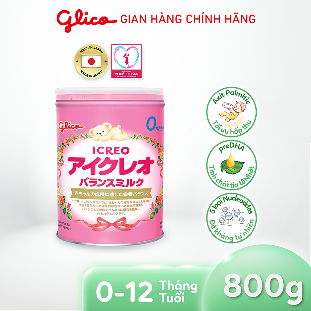 Glico Icreo số 0 800g (0-12 tháng) là công thức dành riêng cho trẻ từ 0 đến 12 tháng.