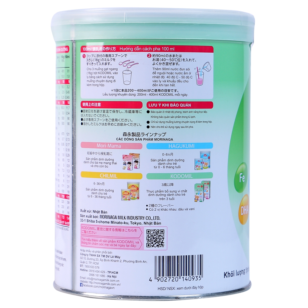 | Tên sản phẩm | Thực phẩm bổ sung vi chất dinh dưỡng: MORINAGA KODOMIL HƯƠNG DÂU |