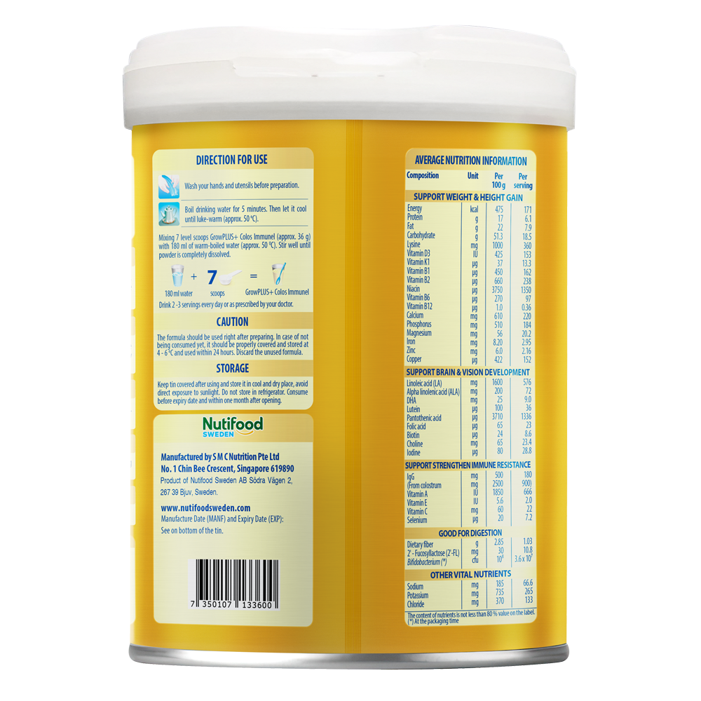 Sản xuất bởi: S M C Nutrition Pte No. 1 Chin Bee Crescent, Singapore 619890.