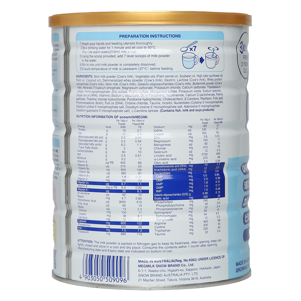Sản phẩm dinh dưỡng công thức Megmilk Snow Brand Snowmilkmegmi 3 (Dành cho trẻ từ 3 tuổi trở lên) 900g