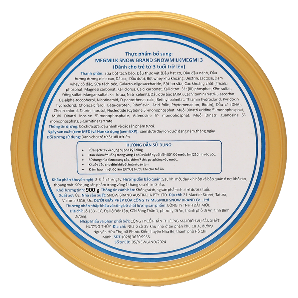 Tên sản phẩm | Sản phẩm dinh dưỡng công thức Megmilk Snow Brand Snowmilkmegmi 3 (Dành cho trẻ từ 3 tuổi trở lên) 900g |