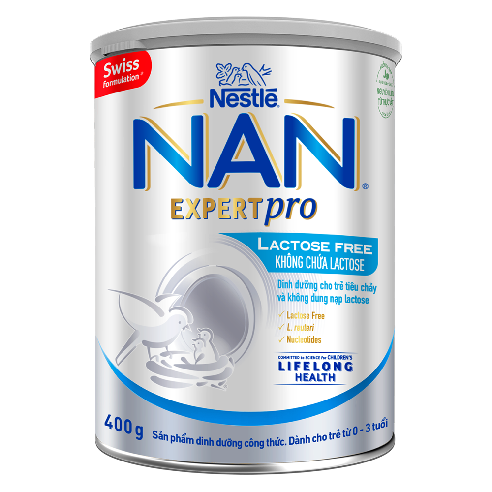 Sữa bột NAN Expert Pro Lactose Free là sản phẩm công thức dinh dưỡng từ Thụy Sĩ dành cho trẻ tiêu chảy và không dung nạp đường Lactose, phù hợp cho trẻ từ 0 đến 3 tuổi.