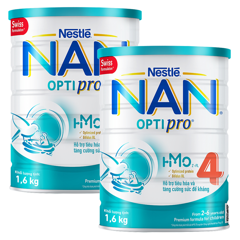 Combo 2 Sữa Nan Optipro 4 1.6kg, HMO (2-6 tuổi)