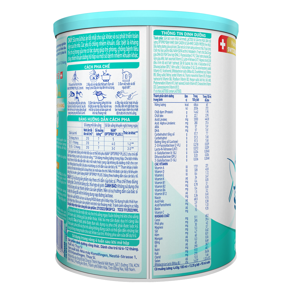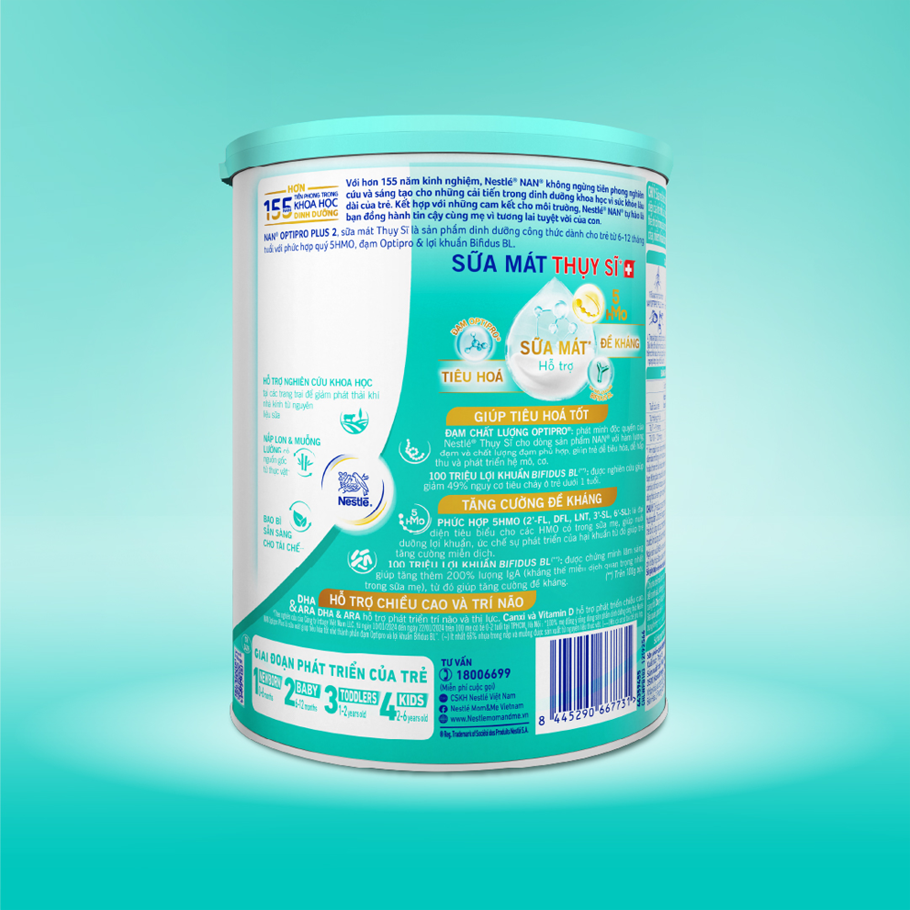 Với công thức cải tiến được phát triển bởi Nestlé Thụy Sĩ, Nan Optipro PLUS 2, với 5HMO là sản phẩm dành cho trẻ từ 6-12 tháng tuổi.