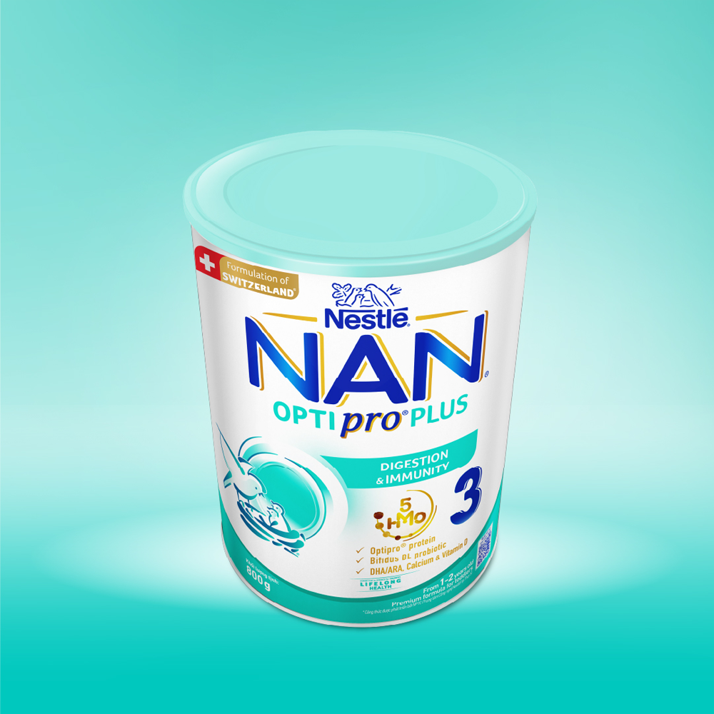 Ở tuổi này, thực đơn của trẻ trở nên đa dạng hơn (bột ngũ cốc, thức ăn dặm). Tham khảo ý kiến cán bộ y tế trước khi dùng bất cứ loại thức ăn mới nào cho trẻ. Nếu trẻ được cán bộ y tế khuyên dùng thức ăn sớm, giảm lượng NAN OPTIPRO PLUS 3 theo đúng hướng dẫn của cán bộ y tế.