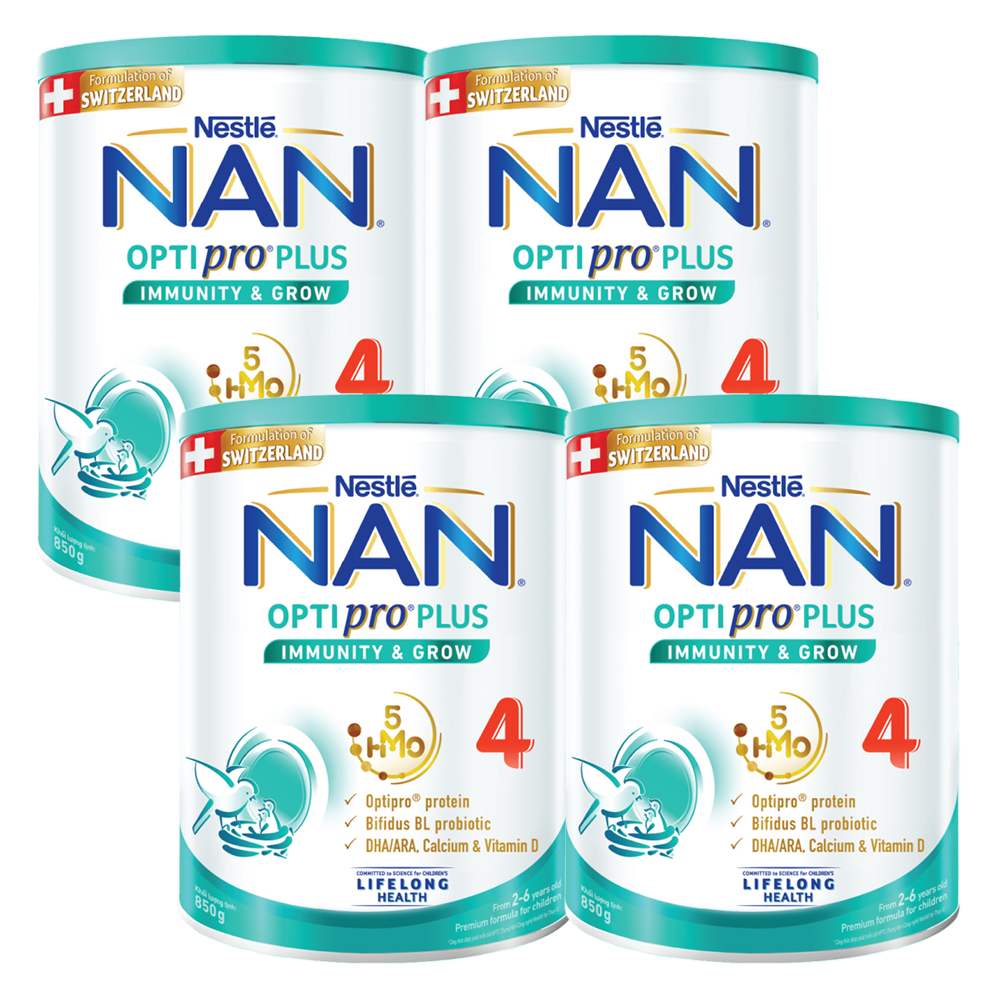 Combo 4 Sữa Nan Optipro PLUS 4 850g, với 5HMO, công thức từ Thụy Sĩ (2-6 tuổi)