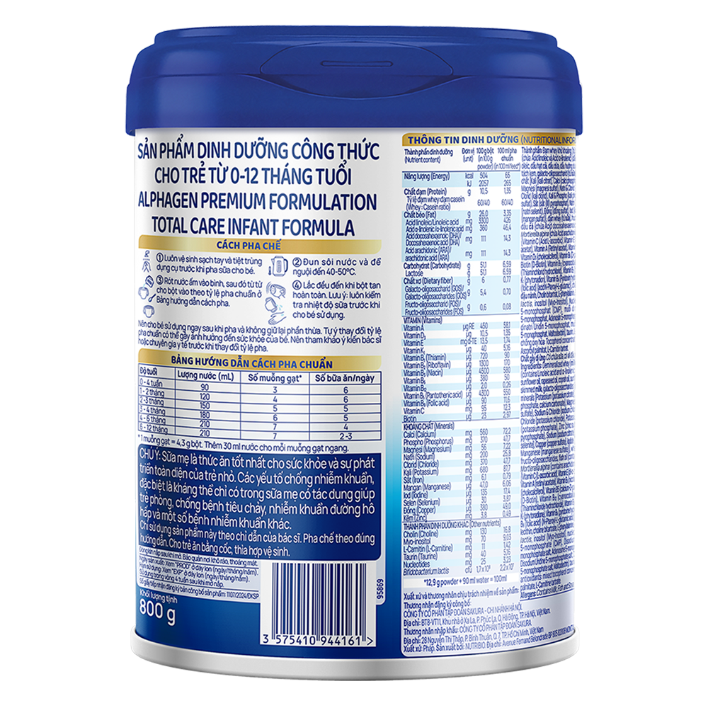 | Tên sản phẩm | SẢN PHẨM DINH DƯỠNG CÔNG THỨC CHO TRẺ TỪ 0 - 12 THÁNG TUỔI ALPHAGEN PREMIUM FORMULATION TOTAL CARE INFANT FORMULA |