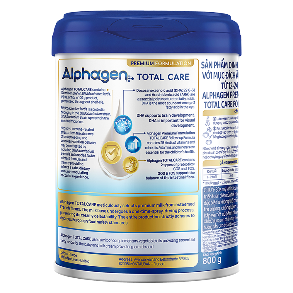 Sữa Alphagen Premium Formulation Total Care được sản xuất và nhập khẩu nguyên lon từ Pháp.