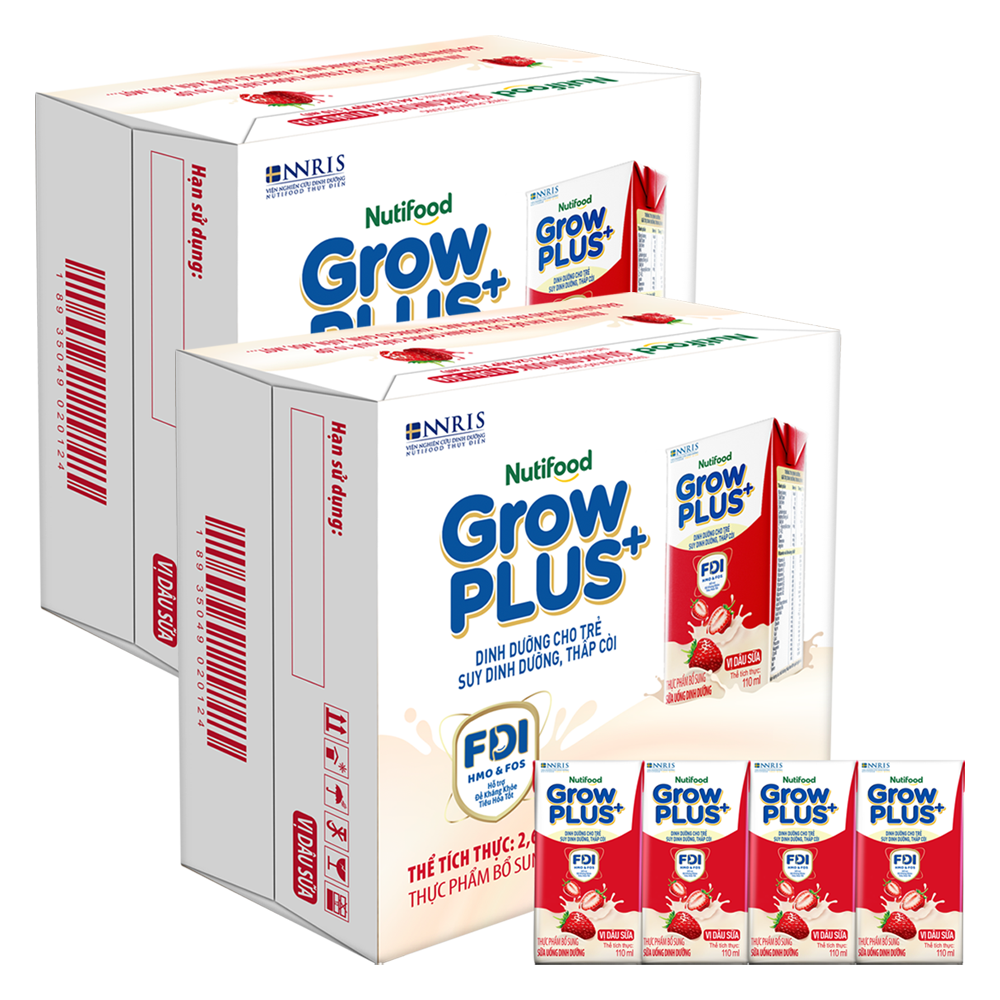 2 thùng sữa bột pha sẵn GrowPLUS+ vị dâu 110ml (lốc 4 hộp) (Trên 1 tuổi)