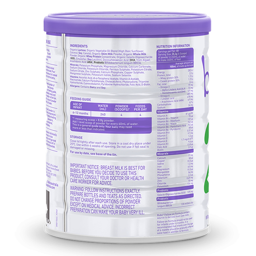 Sữa Bubs Organic Bovine số 2 800g (6-12 tháng)