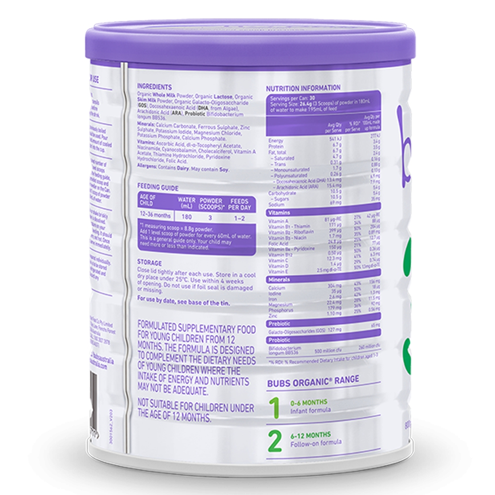 Sữa Bubs Organic Bovine số 3 800g (12-36 tháng)