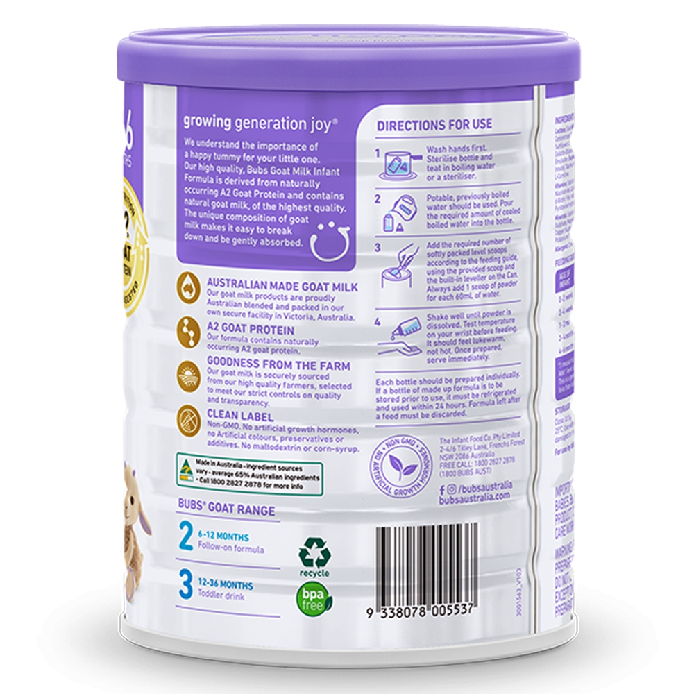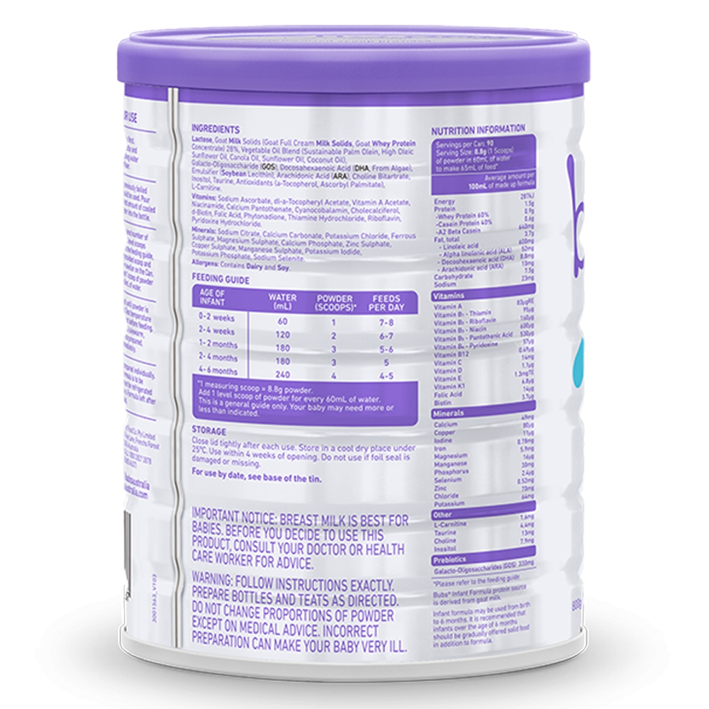 | Tên sản phẩm | Sản phẩm dinh dưỡng công thức cho trẻ từ 0-6 tháng tuổi Bubs Easy-Digest Goat Milk Infant Formula 1 |