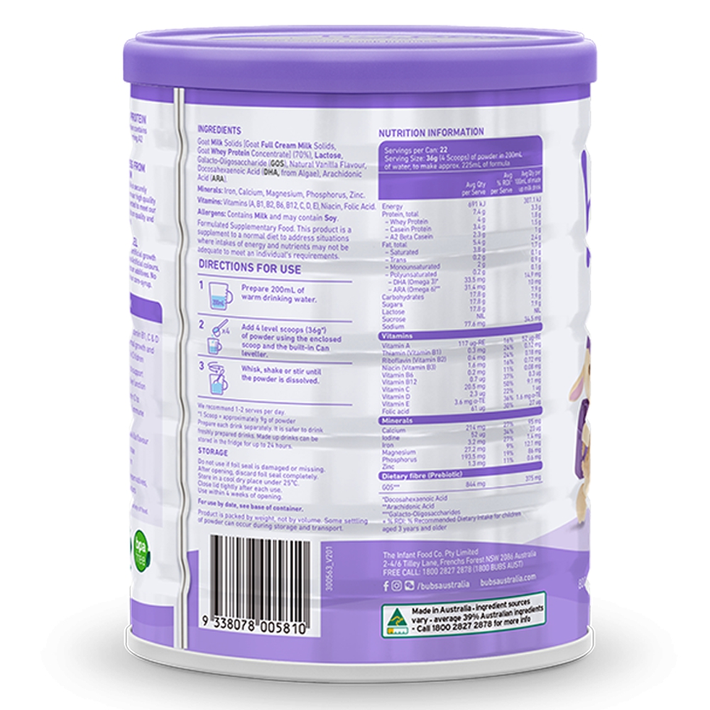 | Tên sản phẩm | Thực phẩm bổ sung BUBS EASY-DIGEST GOAT MILK JUNIOR NUTRITION: |