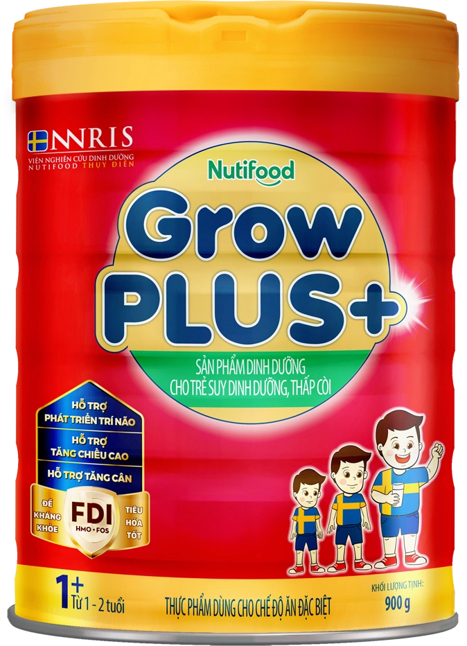 Nutifood GrowPLUs+ - Dinh dưỡng hiệu quả cho trẻ suy dinh dưỡng, thấp còi là sản phẩm của Nutifood với công thức FDI, xây dựng trên nền tảng "Đề Kháng khỏe, Tiêu Hóa tốt".
