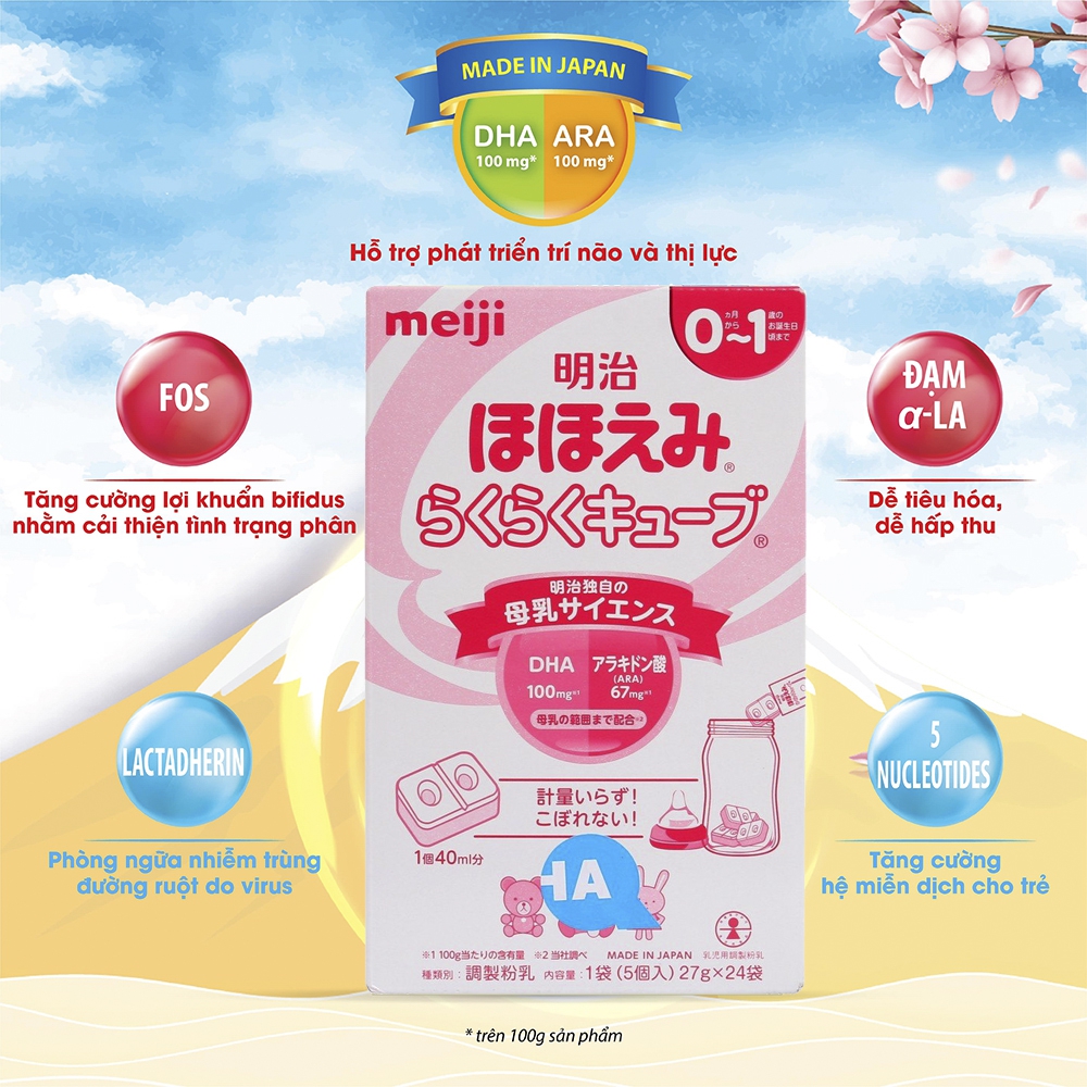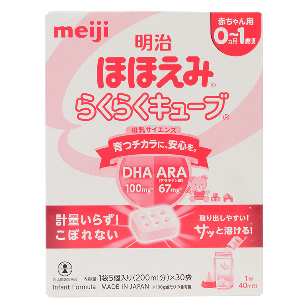 | Tên sản phẩm | Sữa Meiji nội địa dạng thanh Hohoemi Raku Raku Cube, 0-1 tuổi, 810G |