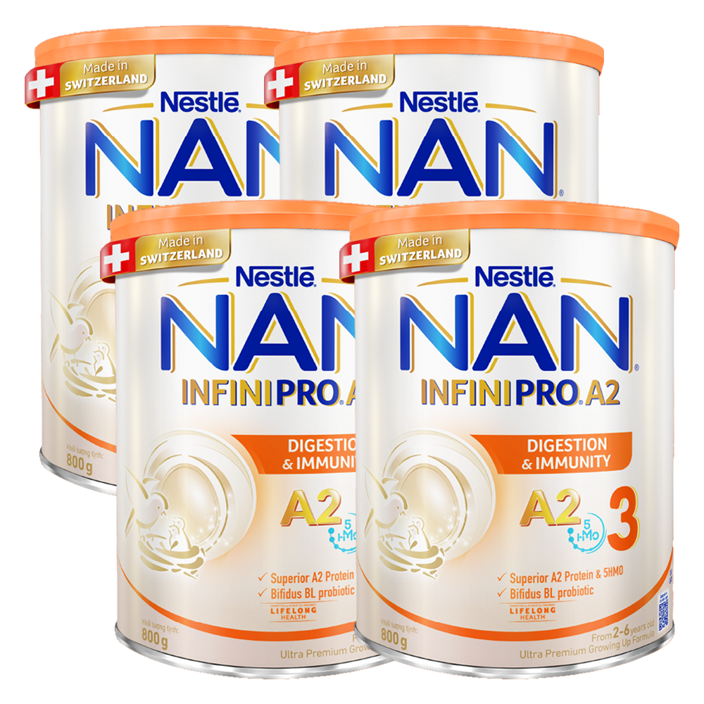 Combo 4 Sữa NAN INFINIPRO A2 800g số 3 (5HMO) (2-6 tuổi)