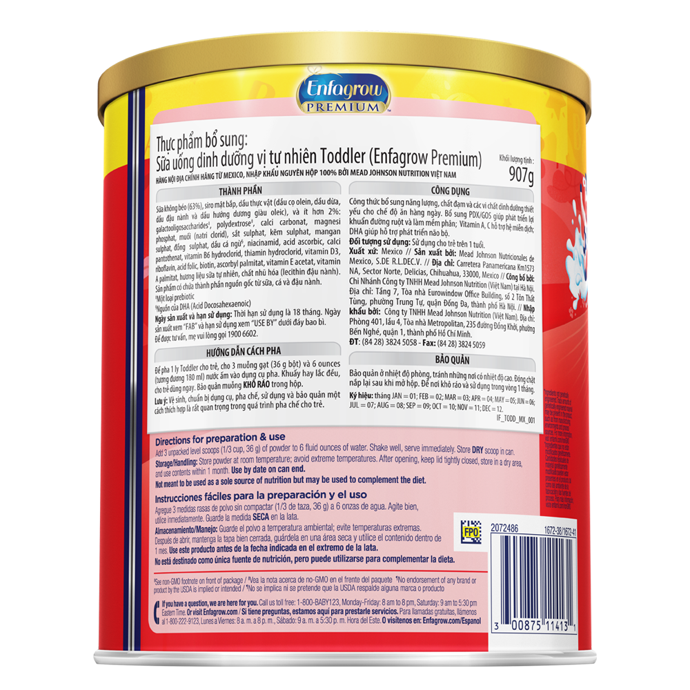 | Tên sản phẩm | Thực phẩm bổ sung: Thức uống dinh dưỡng Enfagrow Premium Toddler Nutritional |