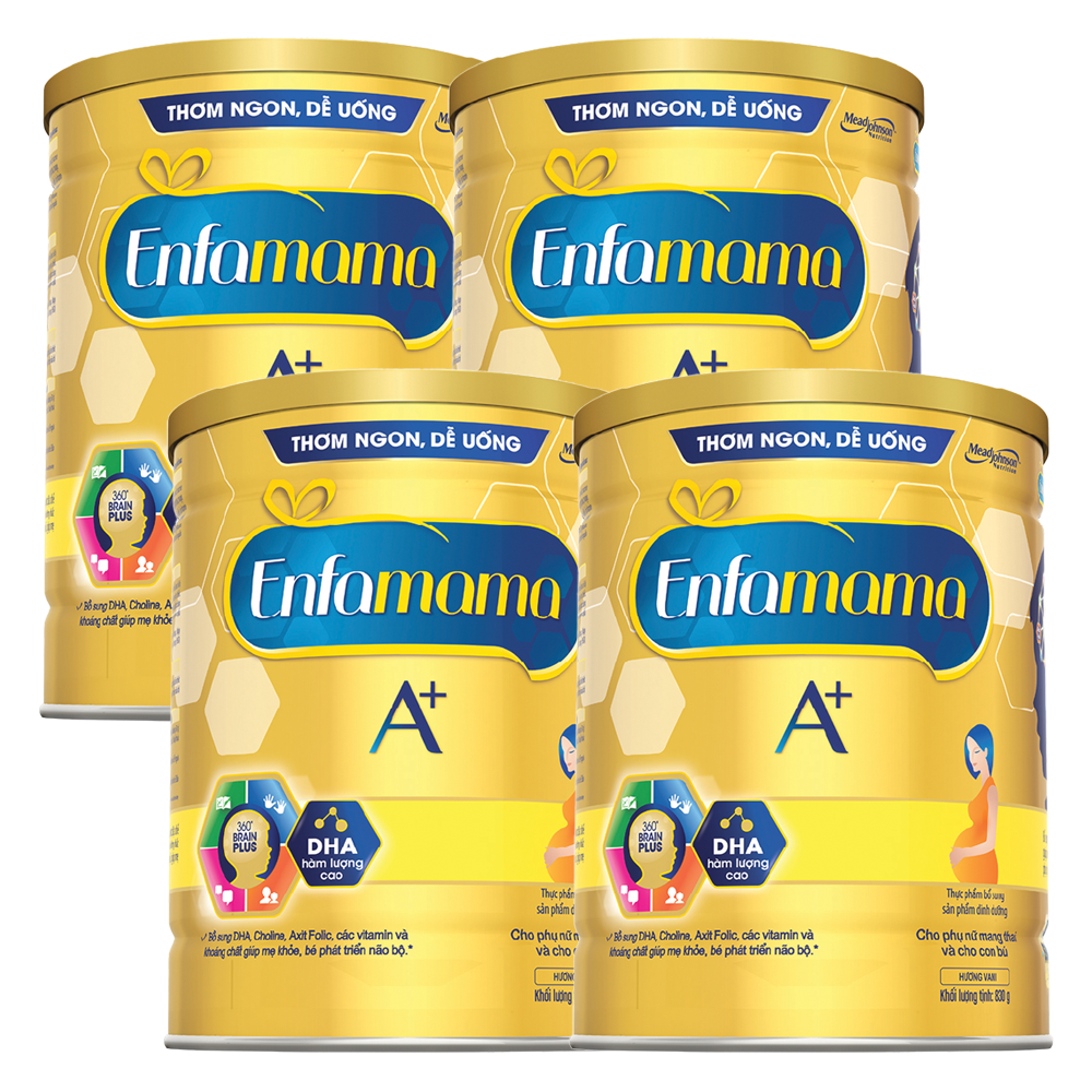 Combo 4 Thực phẩm bổ sung Sản phẩm dinh dưỡng Enfamama A+ hương vani 360° Brain Plus 830G