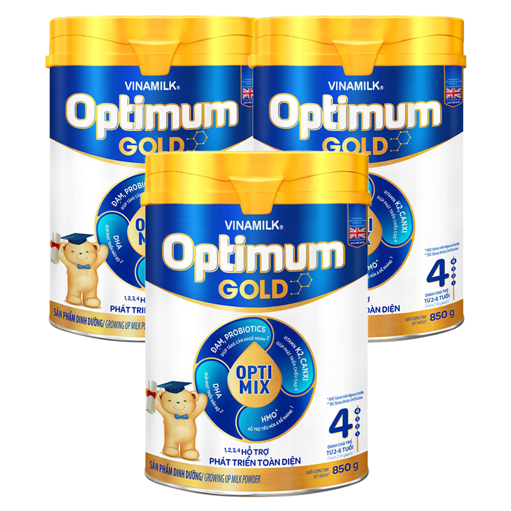 Combo 3 Vinamilk Optimum Gold 4, 850g, 2-6 tuổi