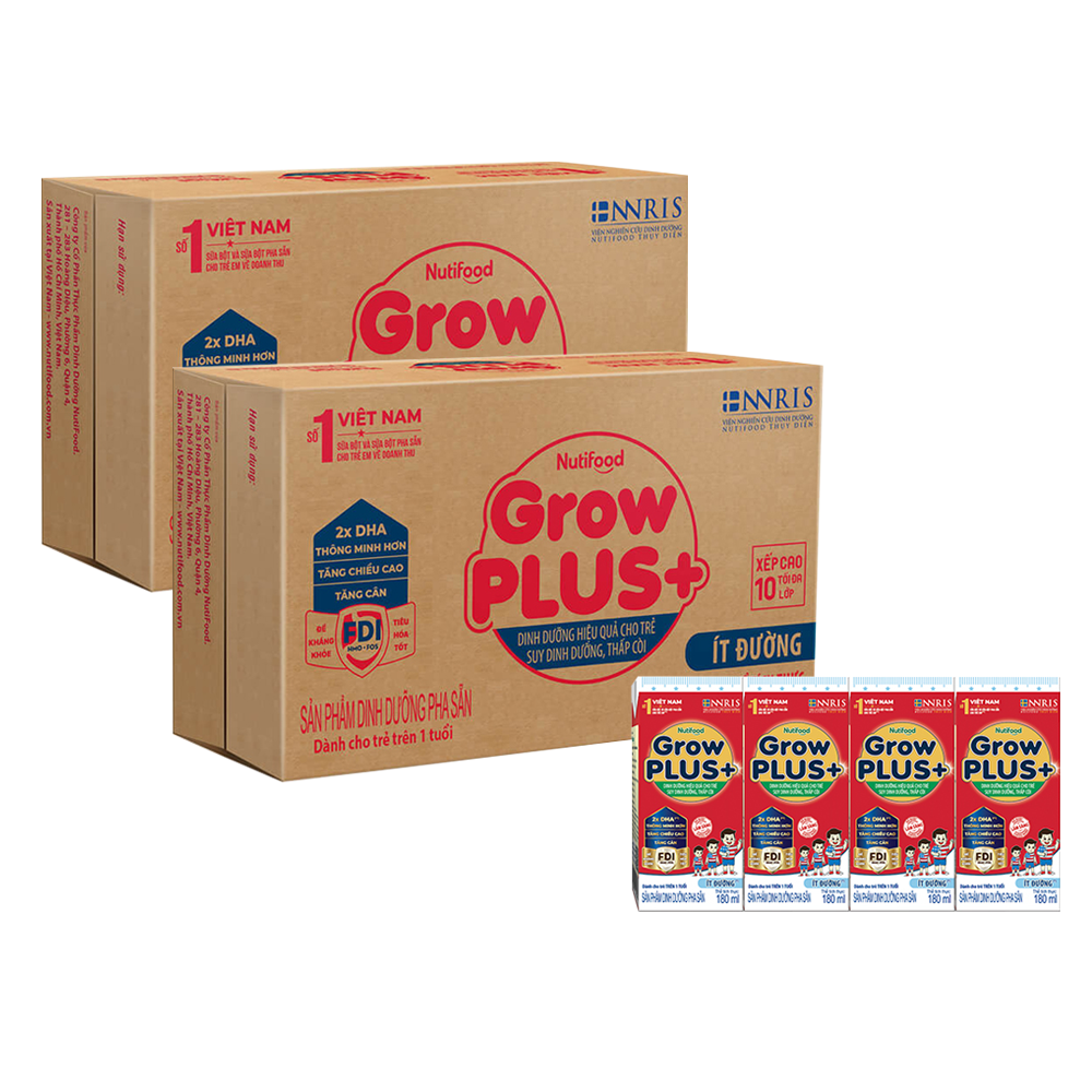 Combo 2 thùng Sữa GrowPLUS+ ít đường 180ml (lốc 4 hộp)