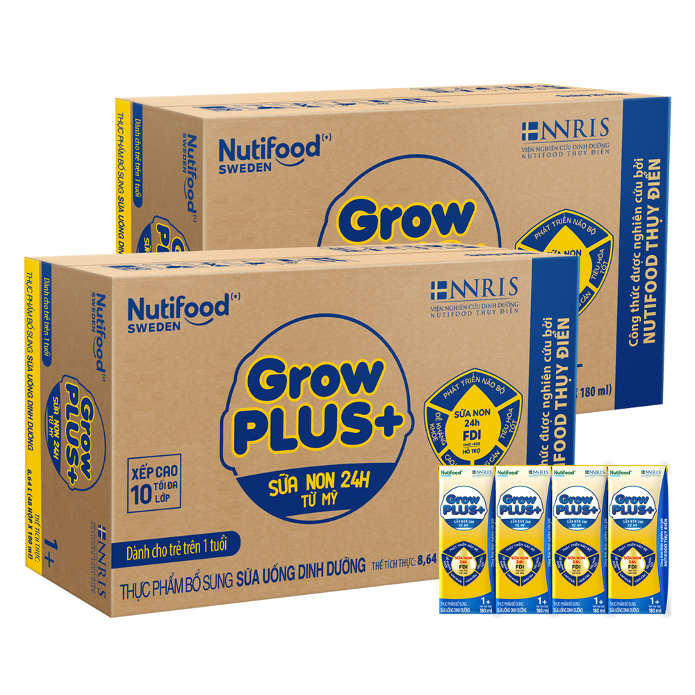 Combo 2 thùng Sữa GrowPLUS+ Sữa non Vàng 1+ 180ml (lốc 4 hộp)