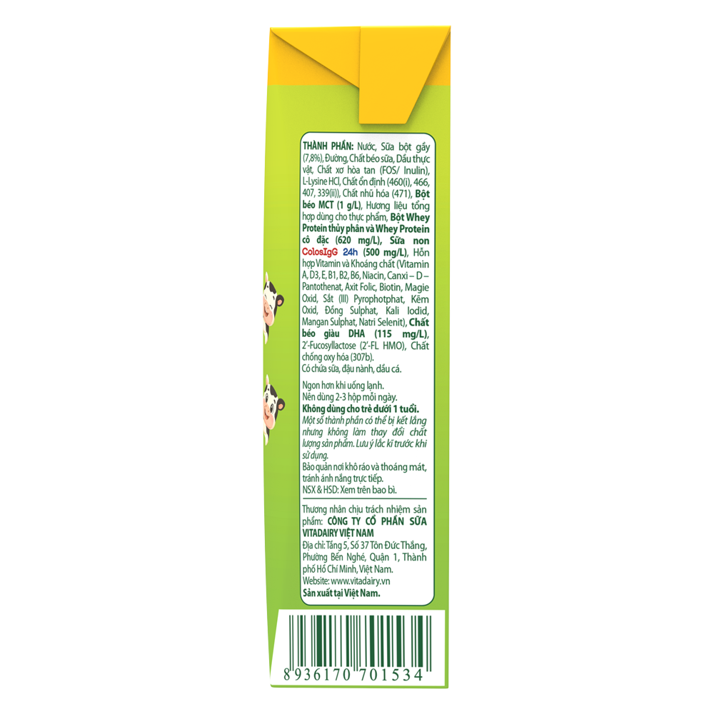 Sữa nước Colosbaby 180ml là thức uống dinh dưỡng dành cho trẻ từ 1 tuổi đến từ thương hiệu Việt - VitaDairy. Bổ sung hàm lượng DHA, Choline, Vitamin A cao, sản phẩm giúp hỗ trợ sự phát triển não bộ, thị giác, tăng khả năng nhận thức và học hỏi của trẻ từ sớm.