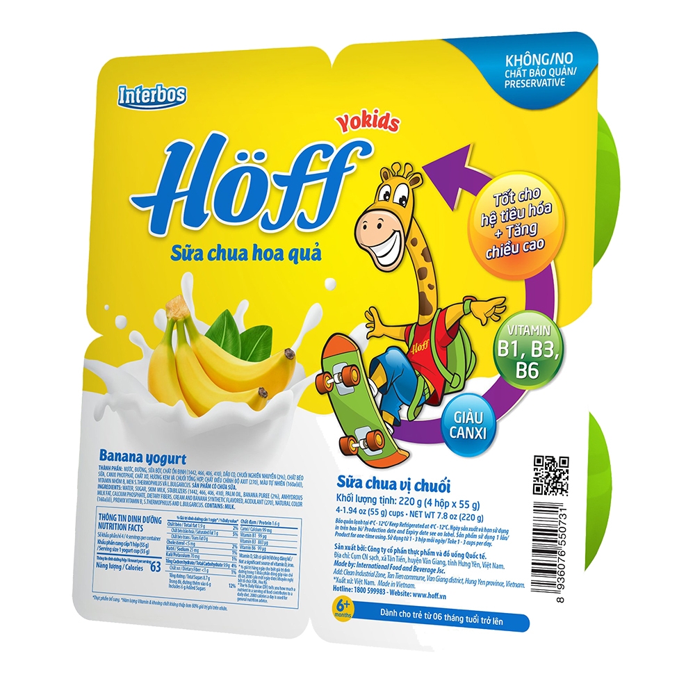 | Tên sản phẩm | Sữa chua hoa quả Hoff - Chuối (Lốc 4 hủ) |