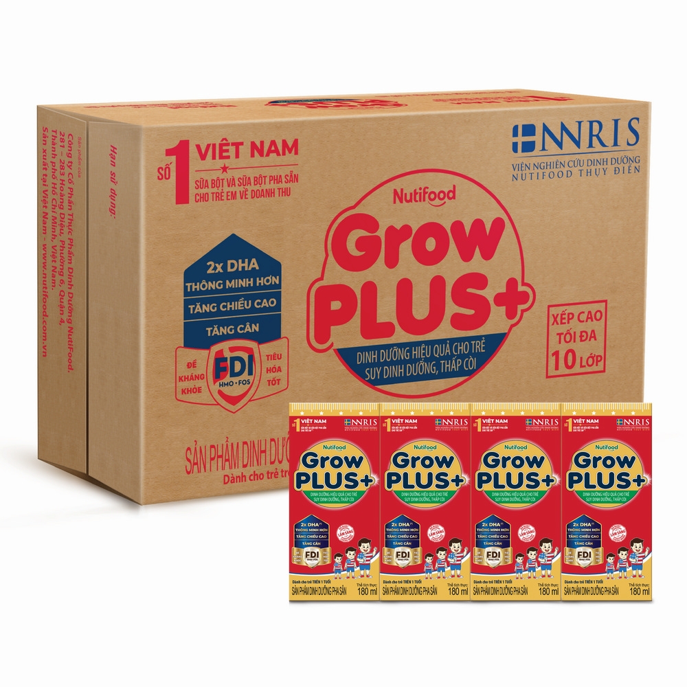 Combo 1.5 thùng sữa GrowPLUS+ Hộp 180ml (lốc 4 hộp)