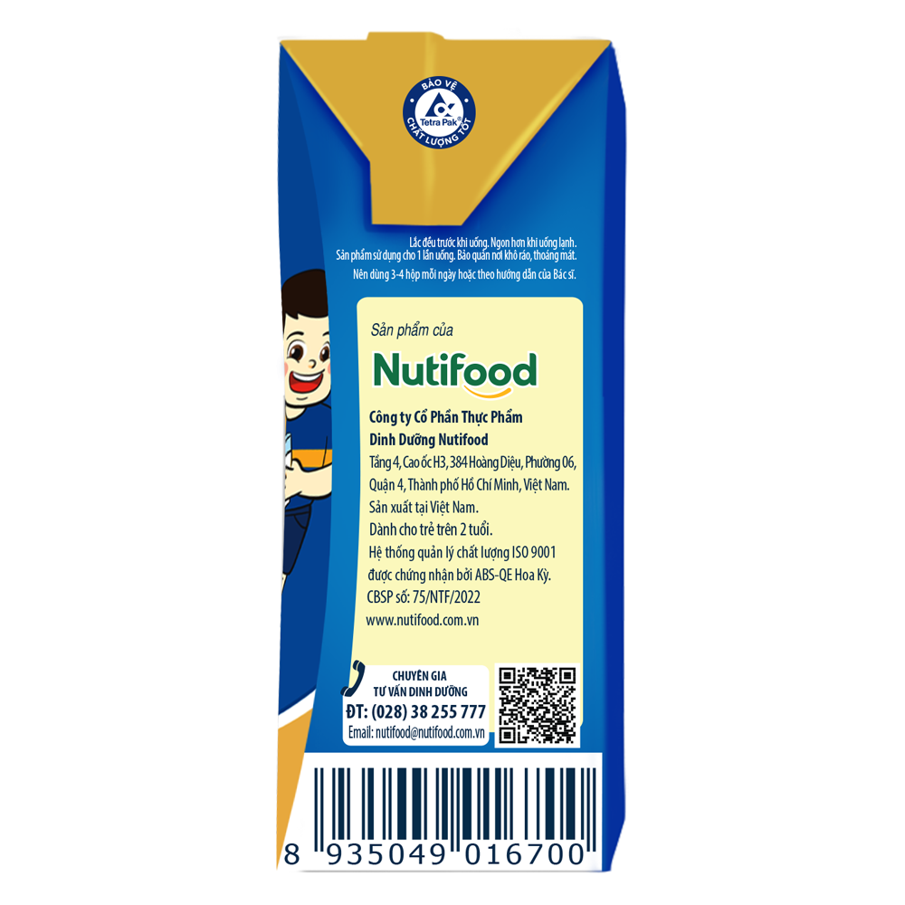 | Nhà sản xuất | Công ty Cổ Phần Thực Phẩm Dinh Dưỡng Nutifood Bình Dương Lô E3, E4 Khu Công Nghiệp Mỹ Phước, Phường Mỹ Phước, Thành phố Bến Cát, tỉnh Bình Dương, Việt Nam |
