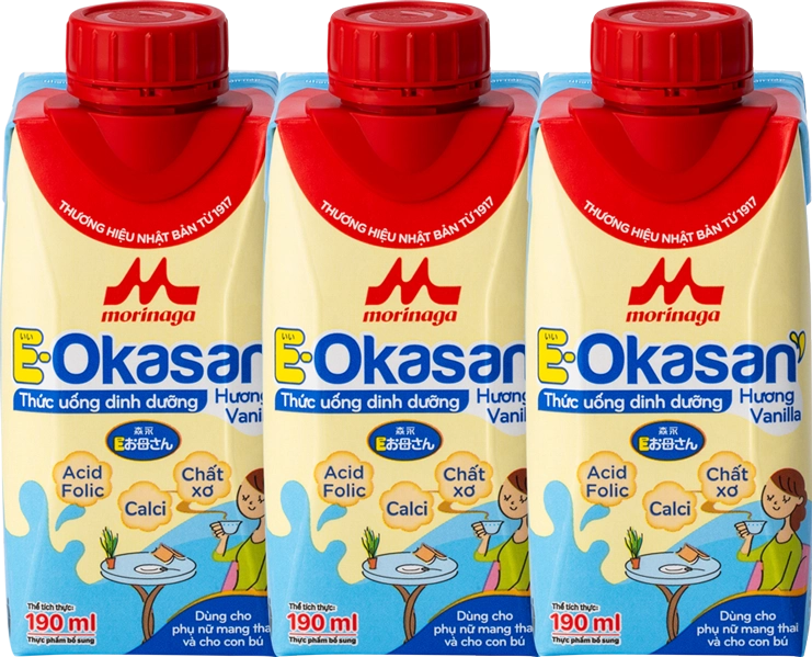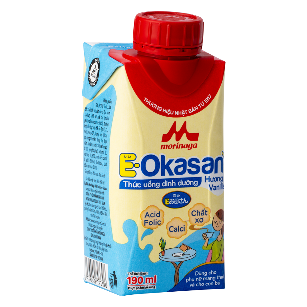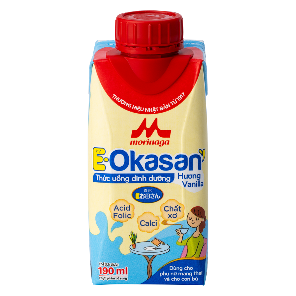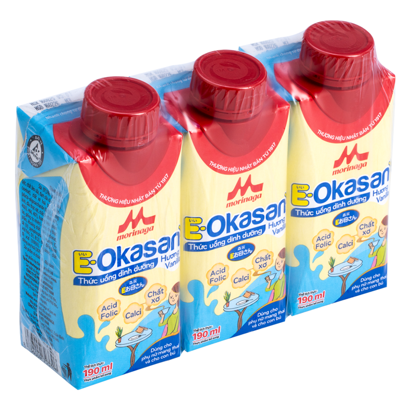 Thức uống dinh dưỡng Morinaga E-Okasan hương vanilla 190ml (lốc 3 hộp) dành cho mẹ bầu và đang cho con bú.