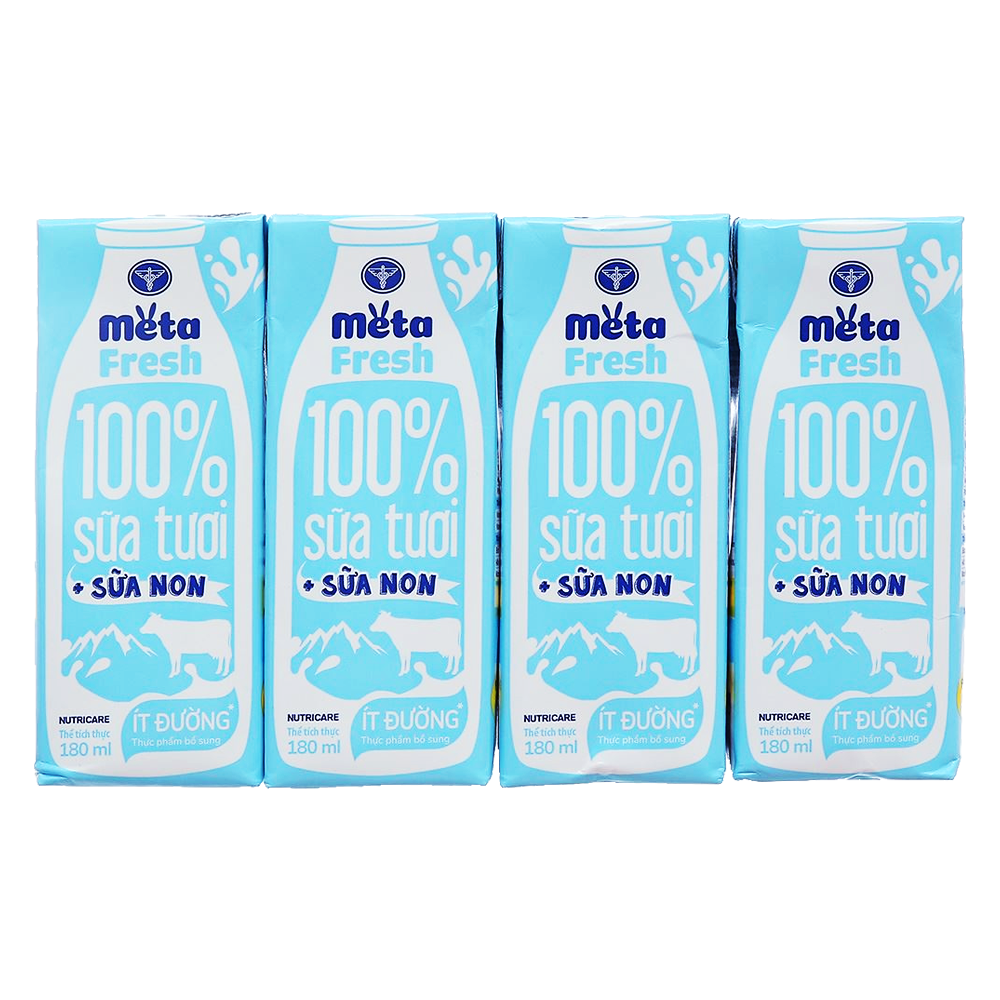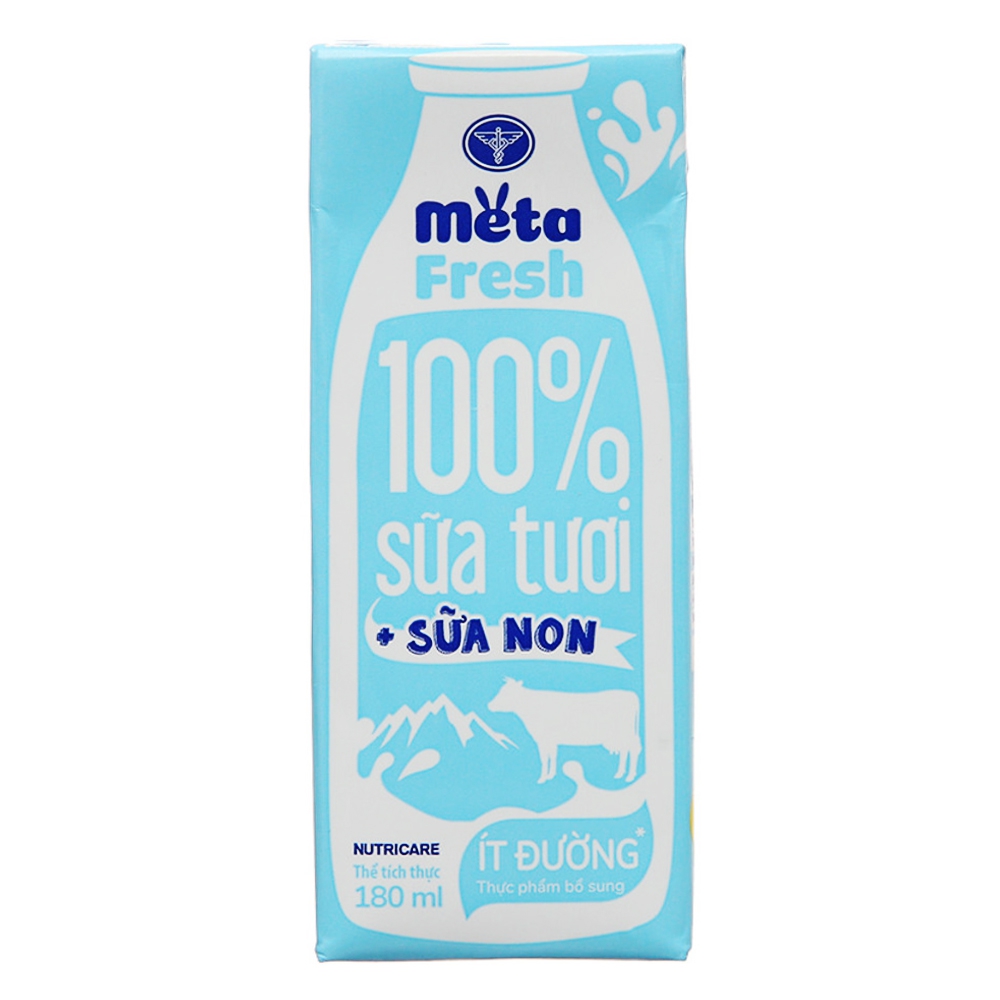 | Tên sản phẩm | Sữa tươi ít đường bổ sung sữa non Meta Fresh 180ml |