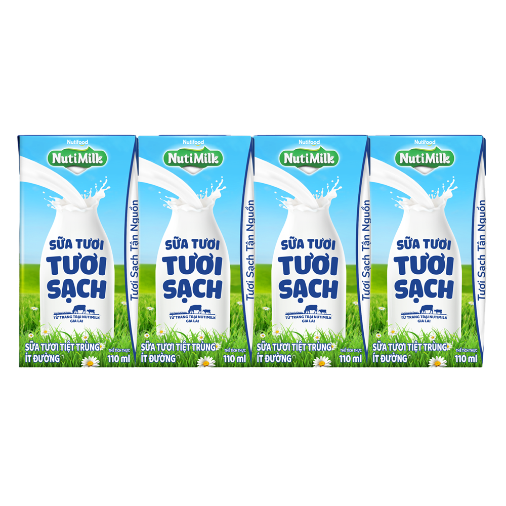 Sữa tươi sạch tiệt trùng Nutimilk, ít đường, 110ml (lốc 4 hộp)