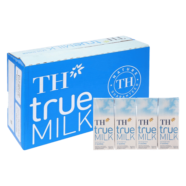 Thùng Sữa tươi tiệt trùng TH true Milk ít đường 180ml (lốc 4 hộp)