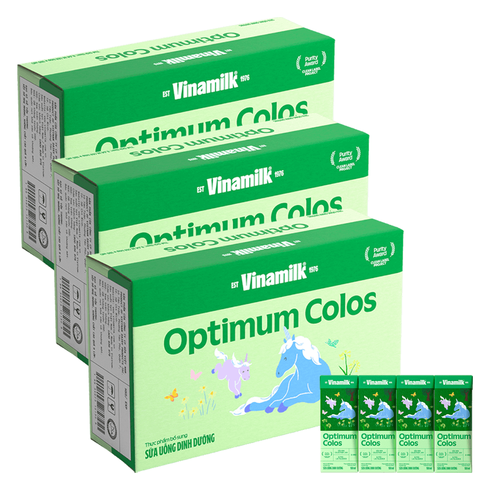 3 Thùng Sữa uống dinh dưỡng Optimum Colos 180ml (Lốc 4 hộp) new