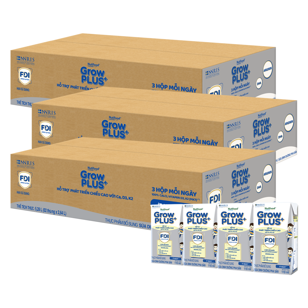 Combo 3 thùng sữa GrowPLUS+ (Bạc), 4x110ml, 36 lốc (3 thùng 12 lốc hoặc 6 thùng 6 lốc)