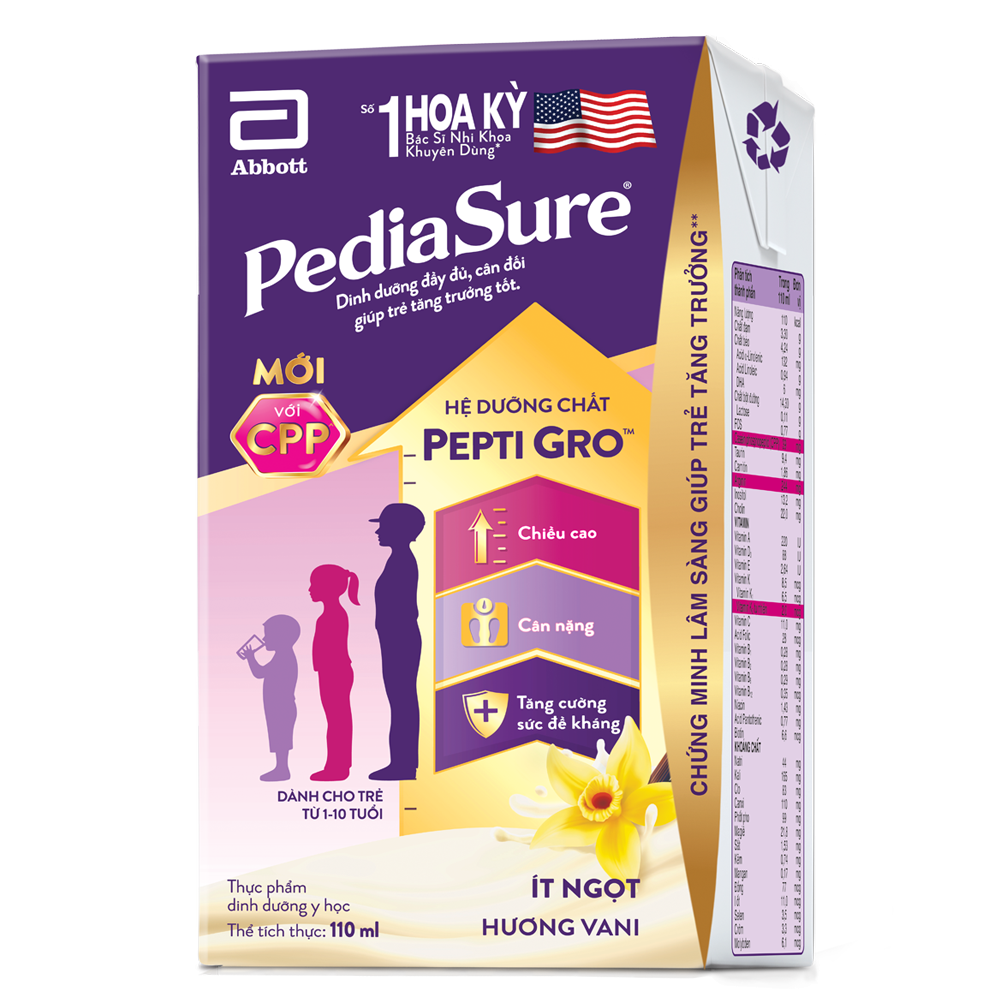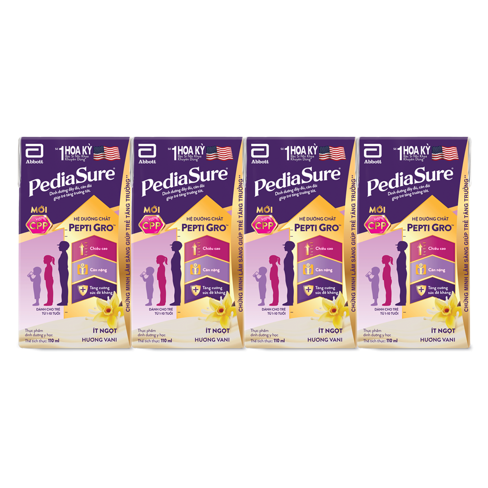 | Tên sản phẩm | Thực phẩm dinh dưỡng y học cho trẻ 1-10 tuổi: Pediasure hương vani (110ml) (Lốc 4) |