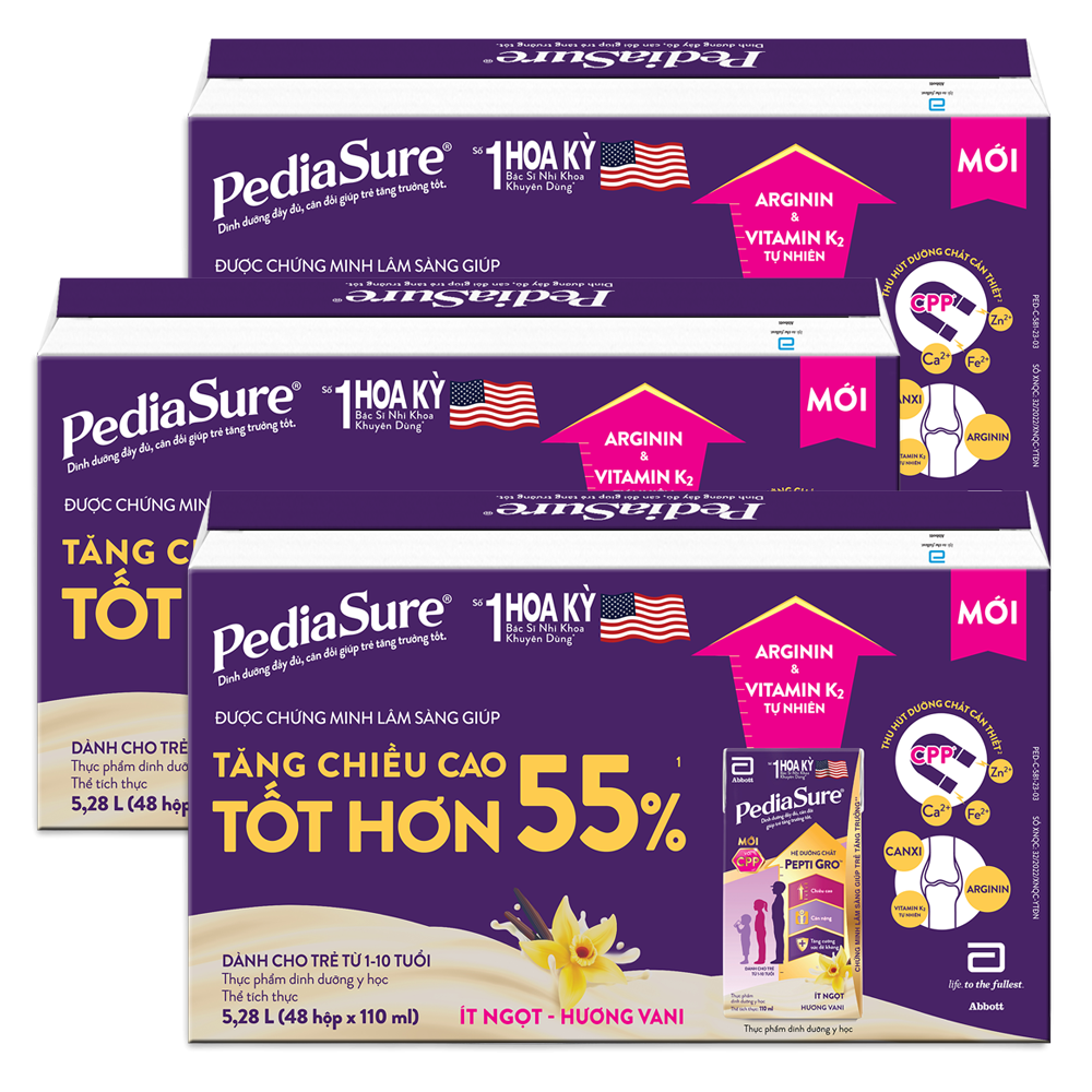Combo 3 Thùng Thực phẩm dinh dưỡng y học cho trẻ 1-10 tuổi: Pediasure hương vani (110ml) (Lốc 4)