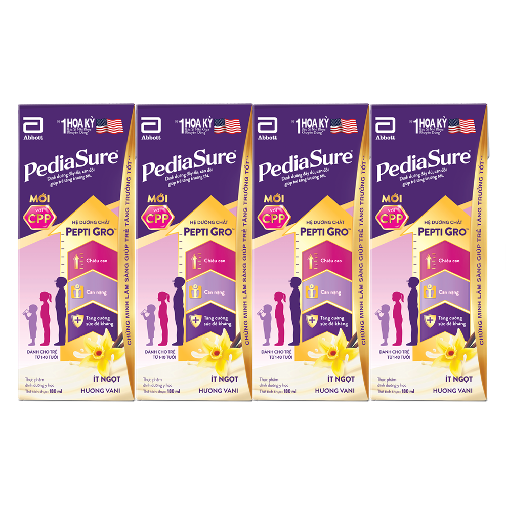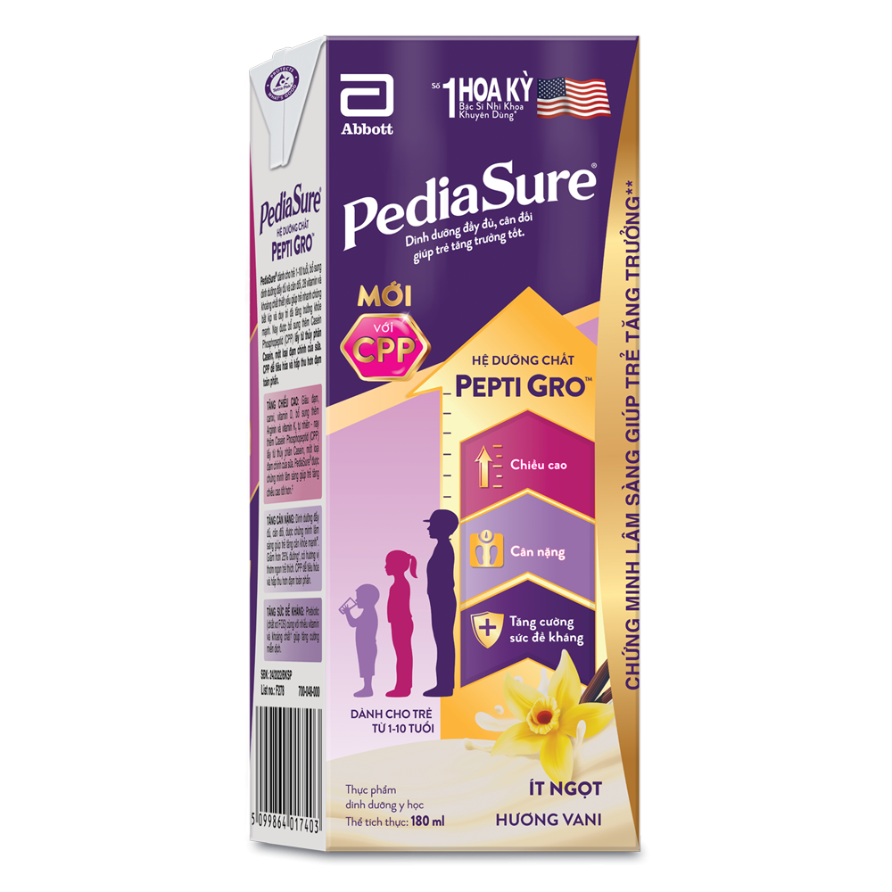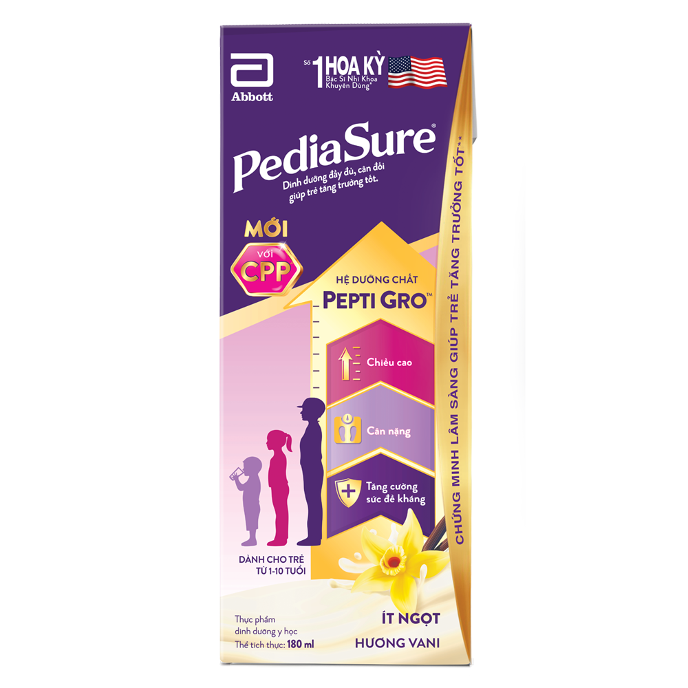 | Tên sản phẩm | Thực phẩm dinh dưỡng y học cho trẻ 1-10 tuổi: Pediasure hương vani (180ml) |