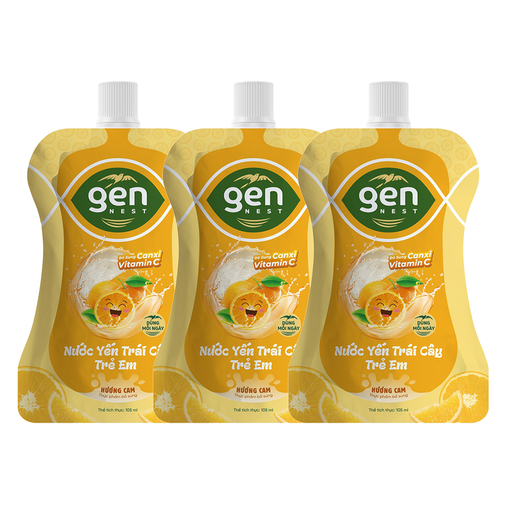 Combo 3 TUI NUOC YEN GENNEST 105ML 5% Trẻ em Hương Cam