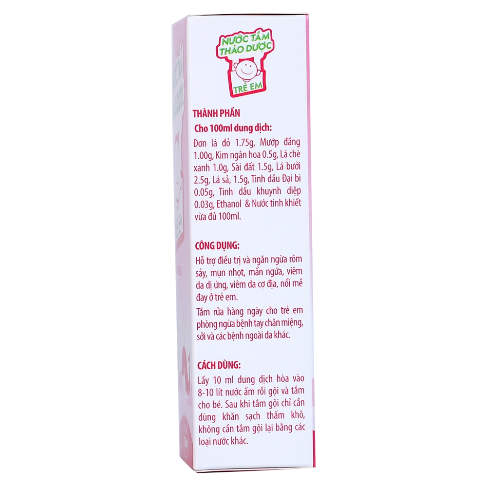 | Hướng dẫn sử dụng | Lấy 10ml dung dịch hòa vào 8 - 10 lít nước ấm rồi gội và tắm cho bé. Sau khi tắm gội chỉ cần dùng khăn sạch thấm khô, không cần tắm gội lại bằng các loại nước khác |
